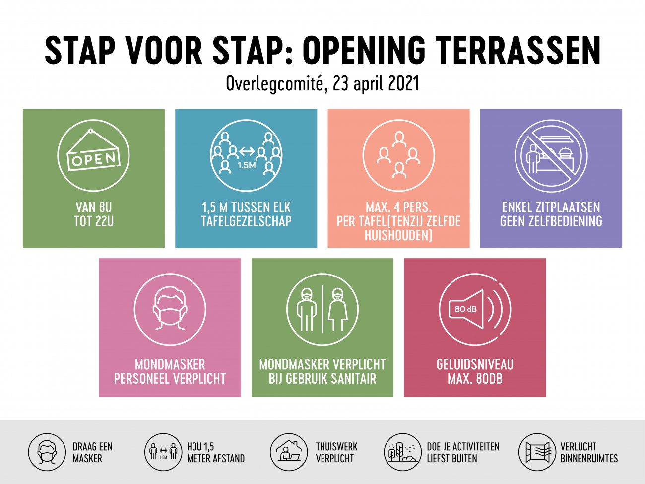 - Maximaal 4 personen aan één tafel (of mensen van hetzelfde huishouden)