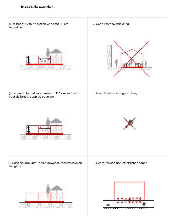 Tevens wordt eraan herinnerd dat de beheerders van de terrassen erop zullen moeten toezien dat de door de exploitatie van de nieuwe terrassen veroorzaakte geluidshinder zoveel mogelijk wordt beperkt.